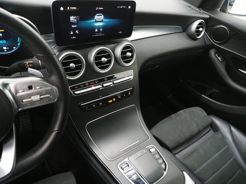Deze Mercedes-Benz GLC 300e 4Matic 4x4 AMG Automaat 320 PK Plug-in Hybride van bouwjaar 2020 met 92.000km verkeert in zeer nette staat en is voorzien van vele luxe opties waaronder: Een Groot Glazen Panoramadak, Lederen/Alcantara Bekleding, AMG Sportstuur, Treeplanken, Half Elektrisch Verstelbare Stoelen, Origineel Mercedes Grootbeeld infotainment systeem met Apple Carplay & Android Auto, Achteruitrijcamera, Cruise Control, Virtual Cockpit, Elektrische kofferklep, Donkere Hemelbekleding, Keyless Start en nog veel meer.