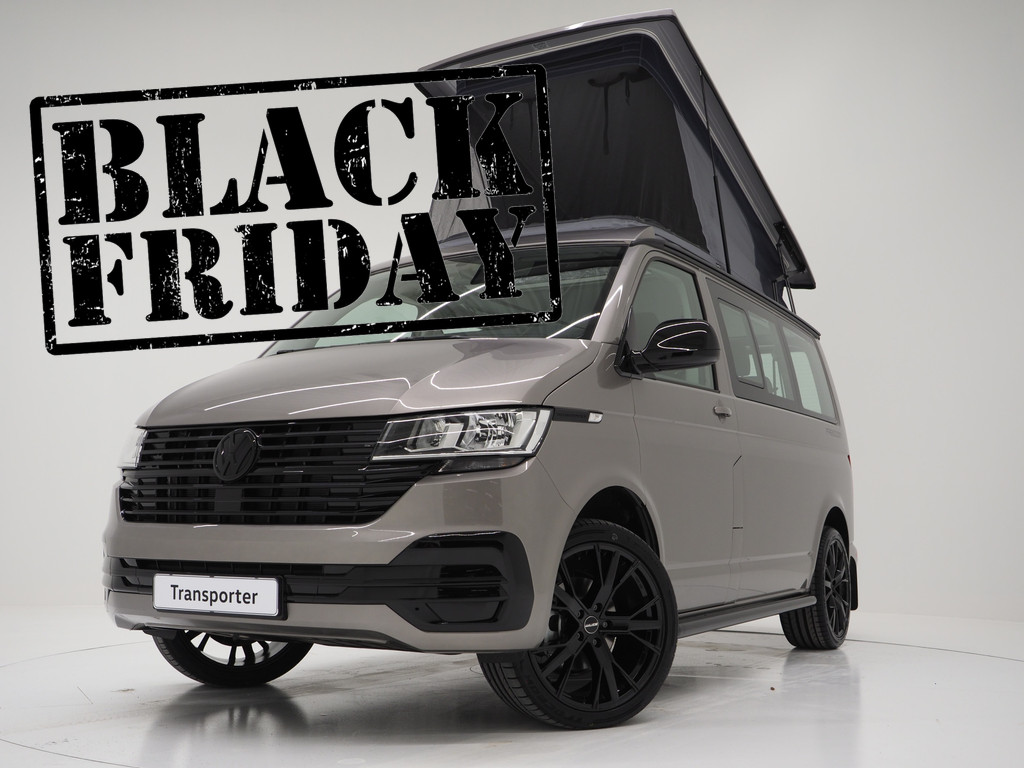 Volledig nieuwe Volkswagen California T6.1 Freedom met hoogglans zwarte sidebars en hooglans zwarte velgen.